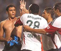 Ao estar perdendo por 2 X 0, via-se que só um milagre para a recuperação. O 1º gol do Grêmio aconteceu aos 44 minutos do primeiro tempo e foi a partir daí que o bate boca entre Obina e Maurício começou chegando até a trocarem socos em pleno campo. O árbitro Heber Roberto Lopez expulsou os dois e fez com que o Palmeiras mantivesse uma postura defensiva no campo durante todo o segundo tempo evitando assim até tomar uma goleada mediante o domínio do jogo pela equipe gaucha
